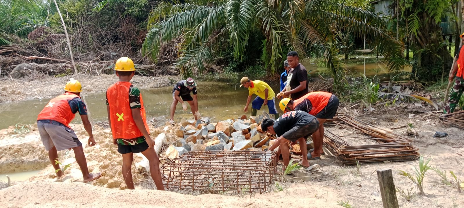 Dalam kegiatan terbaru, tim gabungan yang terdiri dari anggota Kodim 1015/Sampit, perangkat desa, serta masyarakat setempat melakukan aktivitas penguatan distribusi material ke lokasi pancang. Langkah ini merupakan bagian krusial dari fase awal pembangunan jembatan gantung yang akan melintasi Sungai Tualan.
