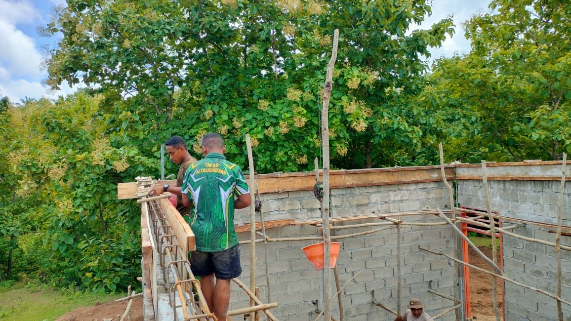 Pemasangan papan cor ini merupakan tahapan penting dalam struktur bangunan, bertujuan untuk memperkuat konstruksi sebelum melanjutkan ke proses pengecoran. Dengan penuh semangat, personel Satgas TMMD Kodim 1618/TTU bekerja sama dengan warga setempat, memastikan setiap sisi bangunan terpasang dengan rapi dan kuat. Kerja sama ini menunjukkan kedekatan antara TNI dan rakyat, yang merupakan inti dari setiap pelaksanaan TMMD.