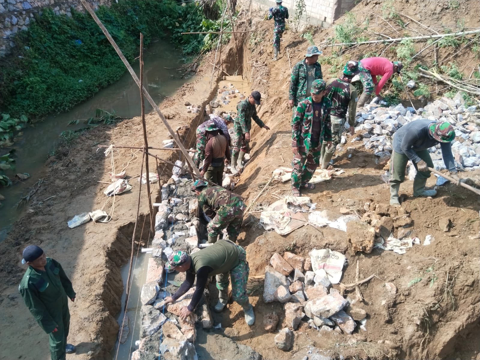 Kolaborasi TNI dan Warga Percepat Pembangunan Jembatan TMMD di Sambuli