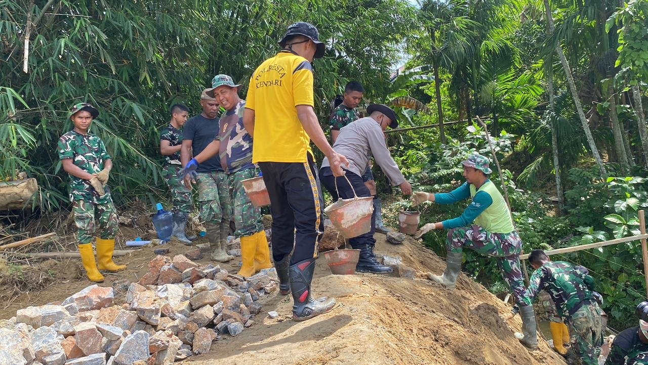 Kendari – Kerja sama antara TNI dan Polri kembali terlihat dalam pelaksanaan Program TNI Manunggal Membangun Desa (TMMD) ke-127 Kodim 1417/Kendari dengan fokus pada pembangunan talud di Kota Kendari pada hari Senin, 23 Februari.