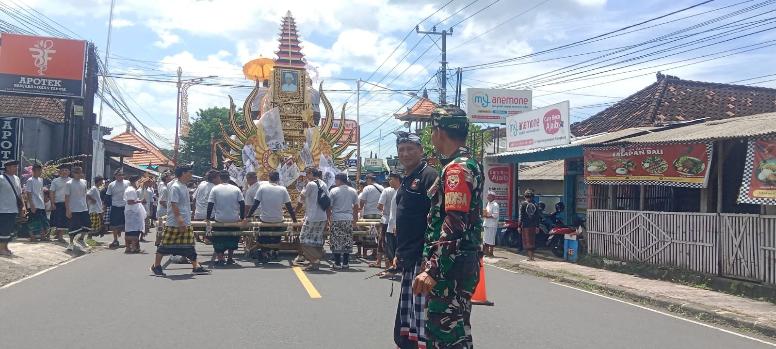 Klungkung – TNI dan Polri menunjukkan peran aktif mereka dalam menjaga keamanan di Klungkung, khususnya saat upacara pengabenan almarhum Anak Agung Gde Putra BA (90 tahun) yang merupakan ayah dari Perbekel Desa Banjarangkan. Kegiatan pengamanan tersebut dilakukan oleh Babinsa Banjarangkan, Serma Asih, bersama Bhabinkamtibmas dan pecalang pada Kamis (05/03/26) di Banjar Selat, Desa Banjarangkan, Kecamatan Banjarangkan, Kabupaten Klungkung.