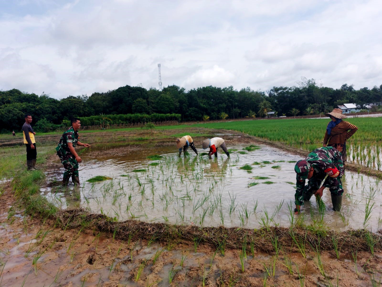 “Selain menjalin silaturahmi dan membangun kemanunggalan TNI dengan rakyat, turun kesawah membantu tanam padi ini bermaksud untuk memberikan motifasi dan dukungan kepada petani agar lebih bersemangat serta secara bersama-sama memaksimalkan lahan yang ada supaya tertanami keseluruhan yang nantinya akan bisa melaksanakan panen raya secara maksimal sehingga terwujud suatu ketahanan pangan,” tandasnya.
