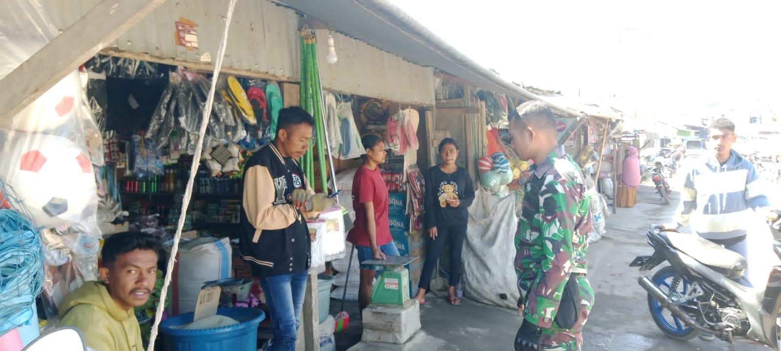 TTS _ Untuk menambah dan meningkatkan jalinan Komunikasi Sosial dengan warga pedagang pasar, Babinsa Koramil 03/Mollo Utara Serda Dona Oematan melaksanakan Komsos turun ke pasar. Kegiatan Komsos tersebut dilaksanakan pada Sabtu, (18/01/25) di Pasar Tradisional Kapan Kecamatan Mollo Utara Kab.TTS