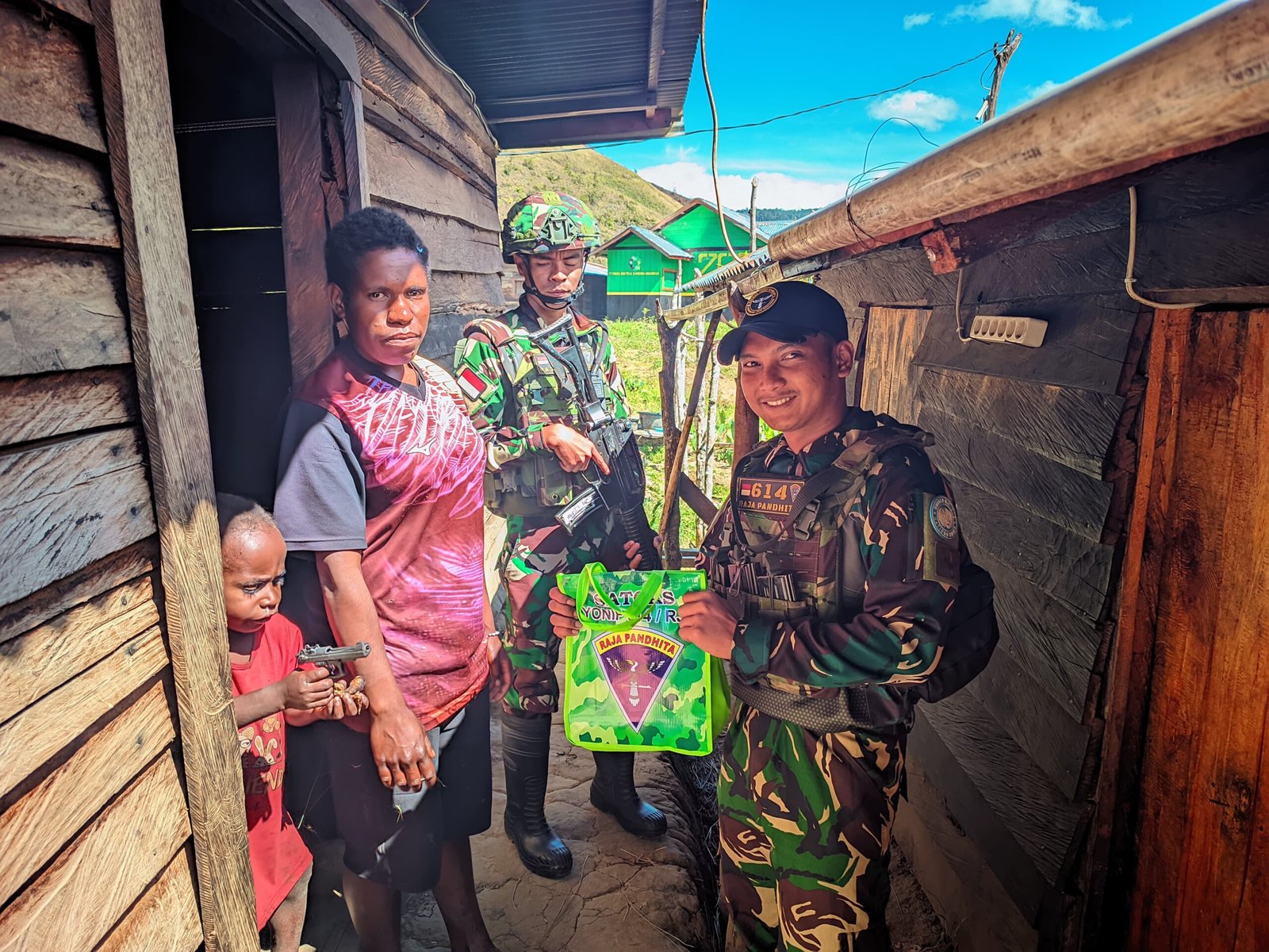 LANNY JAYA – Untuk mempererat tali silaturahmi dan memperkenalkan mempererat tali persaudaraan secara lebih dekat Personel Satgas Yonif 614/RJP Pos Malagayneri melakukan anjangsana dan Komsos ke honai masyarakat. Kegiatan anjangsana ini difokuskan kepada para Tokoh Masyarakat Kampung Lowanom, Distrik Malagayneri, Kabupaten Lanny Jaya, Papua Pegunungan, Jum’at (08/8/2025).
