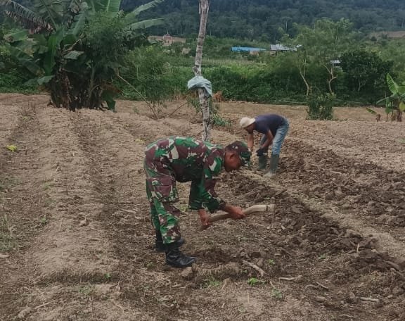 Kodim Poso, – Koptu Yusran, anggota dari Koramil 1307-10/Lore Utara, melaksanakan kegiatan pendampingan ketahanan pangan di Desa Lempe, Kecamatan Lore Tengah, Kabupaten Poso. Kegiatan ini dilaksanakan dengan membersihkan rumput di lahan kebun milik Bapak Nurdin sebagai persiapan untuk penanaman sayur kol. Minggu, (05/1/2024).