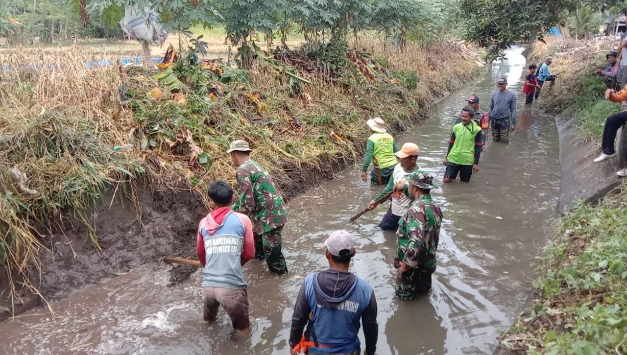 Koramil 01/Panca Lautang Bersama Warga Lakukan Pembersihan Irigasi Bilokka