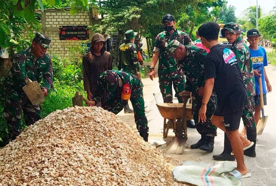 Koramil 0811/12 Bancar Bersama Masyarakat Perbaqiki Jalan Rusak