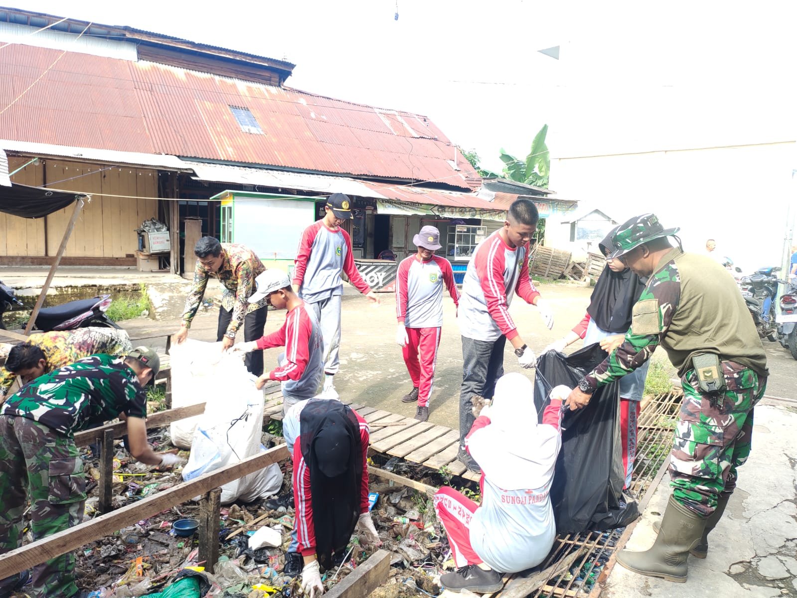 Koramil 1001-08/Sungai Pandan Ajak Warga Peduli Lingkungan Lewat Karya Bakti Bersama