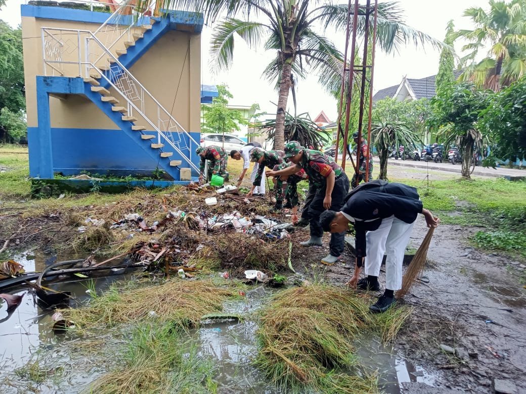 “Peltu Muh Nawar yang memimpin langsung kegiatan mengatakan, kami dari Koramil merupakan satuan teritorial dalam menjaga kebersihan lingkungan dengan membudayakan gotong royong dikalangan siswa siswi SMK 1 sehingga dapat dirasakan oleh masyarakat, bahu membahu bekerja bersama menciptakan lingkungan yang bersih, ”tuturnya.