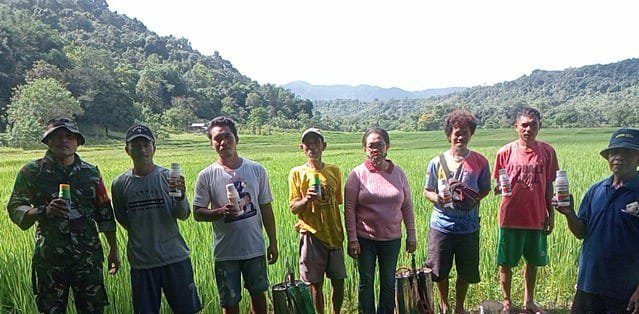 Kegiatan ini adalah bagian dari upaya bersama dalam mendukung pertanian yang sehat dan produktif. Selain Kopda Iketut Triana, hadir pula berbagai pihak terkait, antara lain Bapak Marianus dari Dinas Pertanian, Ibu Imeliana I. Lidia (PPL Desa Watu Nggelek), Babinsa Desa Watu Nggelek, Bapak Fransiskus Jahudin (Ketua Kelompok Tani Taman Indah), dan masyarakat pemilik lahan sawah yang turut berpartisipasi dalam kegiatan tersebut.
