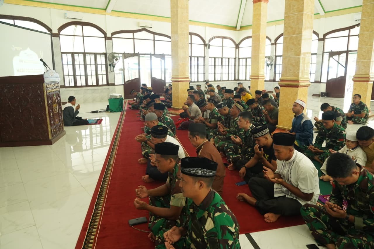 Meulaboh – Dalam rangka memperingati Hari Pahlawan Tahun 2025, Korem 012/Teuku Umar menggelar doa bersama usai pelaksanaan Salat Jumat di Masjid Al-Ikhlas Korem 012/TU, Meulaboh, Kabupaten Aceh Barat, Jumat (8/11/2025).