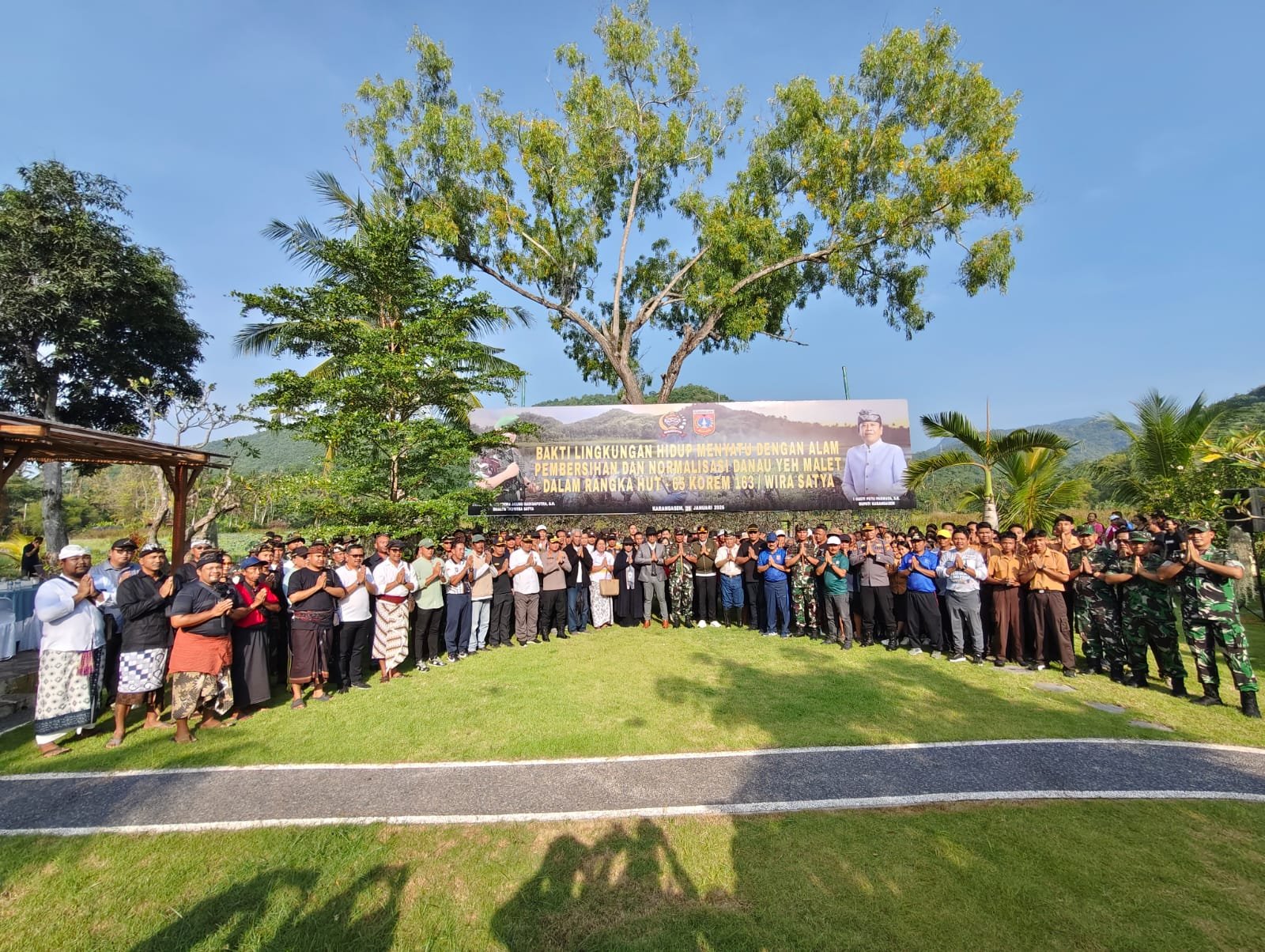 Karangasem, – Dalam rangka menyambut HUT Ke-65 Korem 163/Wira Satya, dilaksanakan aksi Bakti Lingkungan Hidup yang mengusung tema Menyatu dengan Alam, pada Minggu (25/01/26) di Danau Yehmalet. Kegiatan ini dipimpin oleh Danrem 163/Wira Satya, Brigjen TNI Ida I Dewa Agung Hadisaputra, S.H., yang turut melibatkan berbagai pihak, termasuk TNI Polri, Pemkab Karangasem, instansi terkait, dan masyarakat setempat, termasuk anak-anak pramuka.