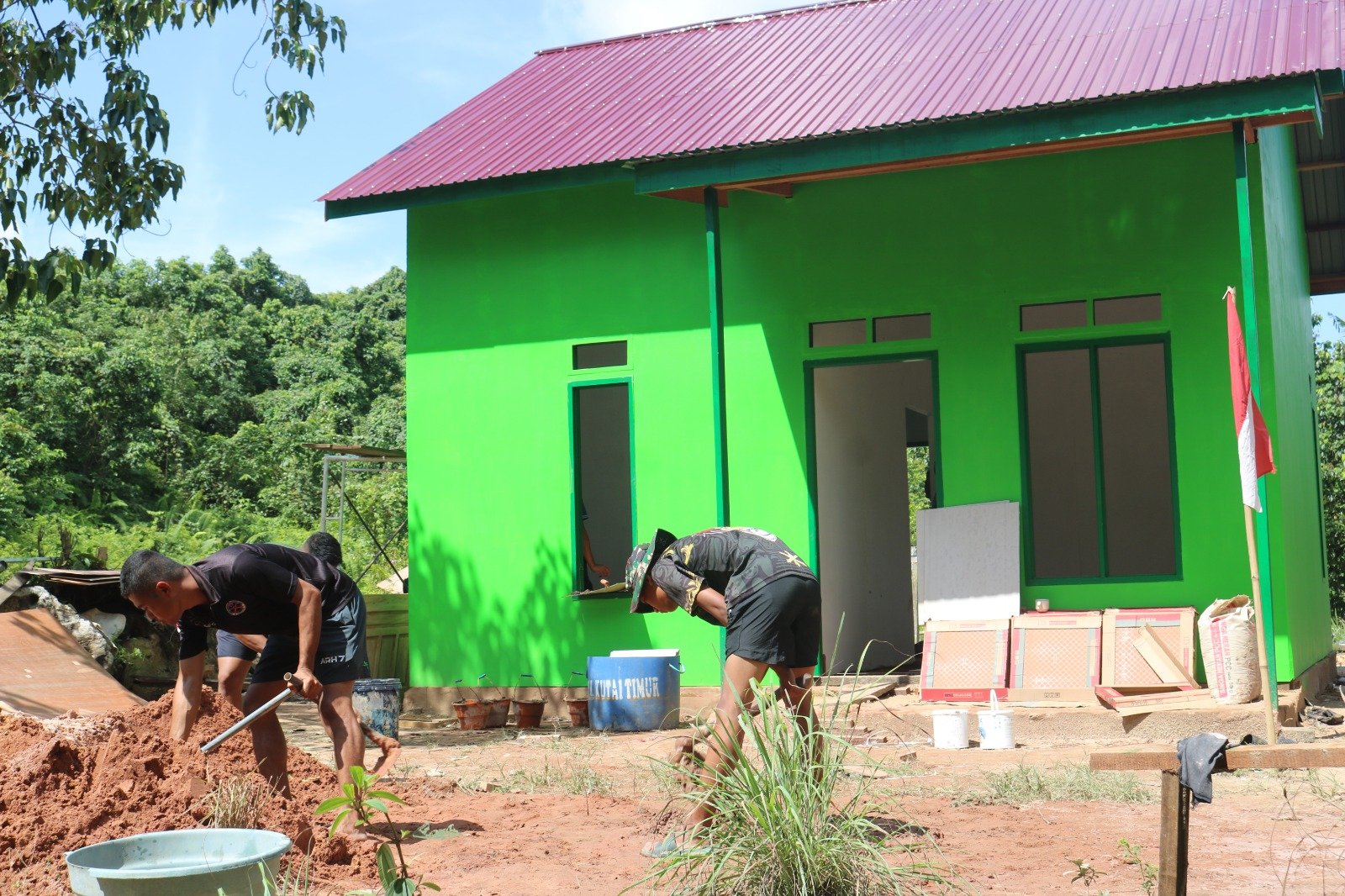 Kini, berkat Program TNI Manunggal Membangun Desa (TMMD) Ke-125 Kodim 0909/Kutai Timur, semua itu berubah. Rumah yang dulunya tidak layak huni kini berdiri kokoh dengan cat hijau segar, atap kuat, dan lantai keramik yang sebentar lagi selesai. Bagi Rahman, perubahan ini bukan hanya soal tempat tinggal yang lebih layak, tapi juga memberi dorongan untuk memperbaiki perekonomian keluarganya. “Rumah yang nyaman membuat saya lebih bersemangat bekerja. Anak-anak pun bisa belajar dengan tenang,” ujarnya penuh rasa syukur, Jumat (15/08).