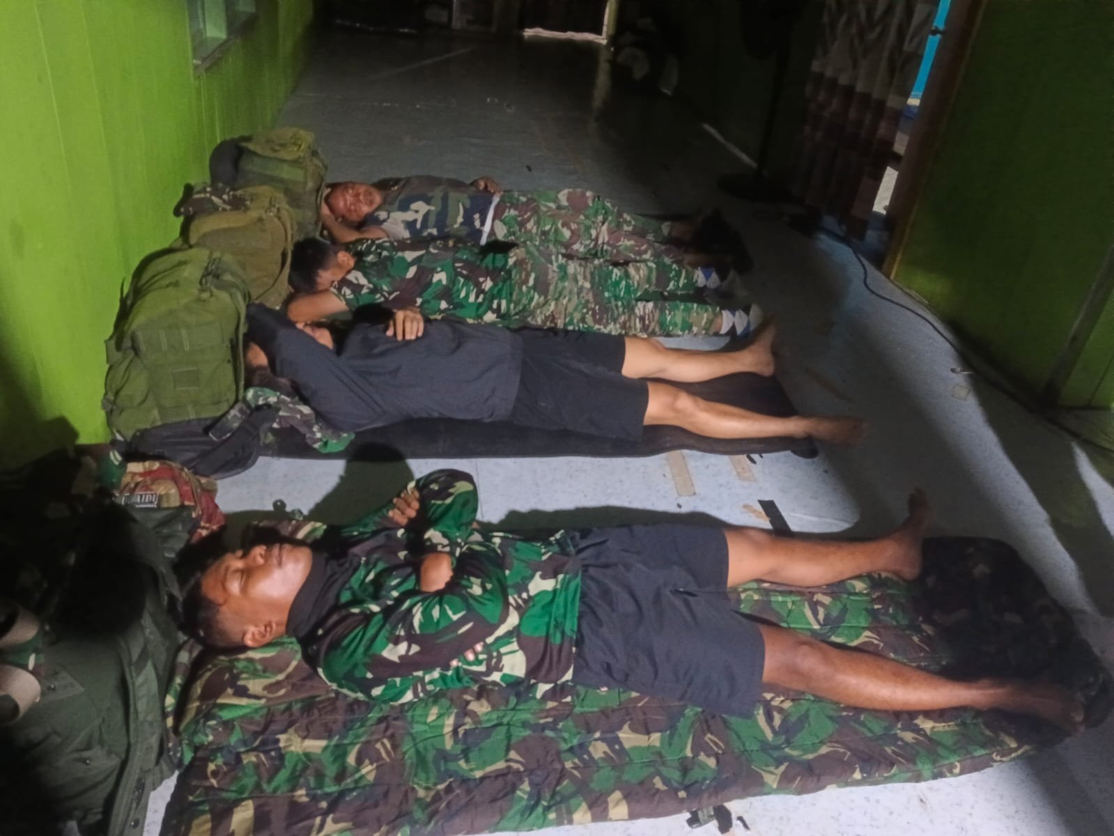 Tikar pandan, kasur tipis, dan bantal seadanya terasa begitu nyaman setelah seharian terpapar terik matahari dan debu jalan. Aroma kopi yang sempat diseduh warga sebelum tidur masih samar tercium, menyisakan kehangatan yang mengendap di hati para prajurit.