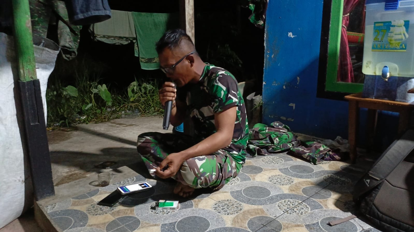 Mempawah – Setelah seharian berjibaku dengan pekerjaan fisik dalam program TNI Manunggal Membangun Desa (TMMD) ke-124 di Desa Sungai Purun Kecil, Kecamatan Sungai Pinyuh, Kabupaten Mempawah, personel Satgas TMMD memilih untuk melepas penat dengan cara sederhana namun penuh keakraban yaitu karaokean di rumah warga.