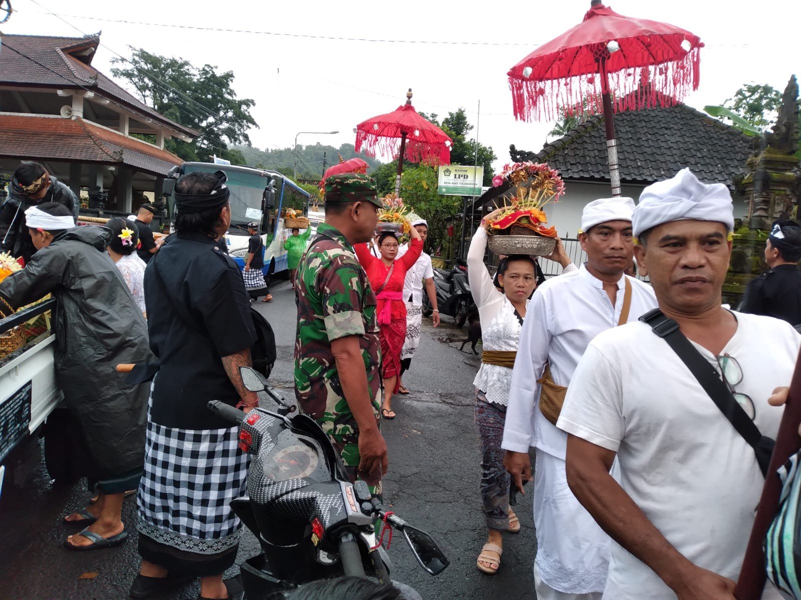 Babinsa Tegak Peltu Gede Anta menerangkan, pagi ini kurang lebih sekitar 500 orang hadir dengan melibatkan 100 kendaraan roda 2 dan 4 dalam pelaksanaan upacara melasti yang digelar Desa Adat Tulang Nyuh.
