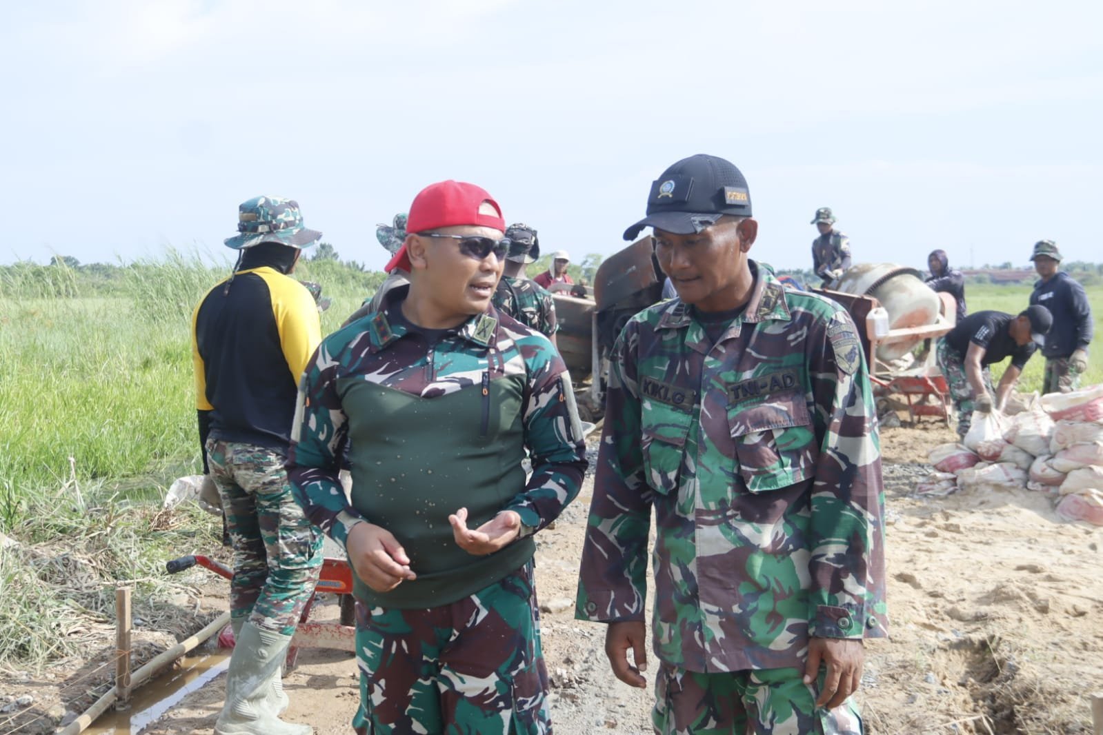 Mempawah – Memasuki hari kelima pelaksanaan TMMD Reguler ke-124, semangat personel Satgas bersama warga di Dusun Nikmat, Desa Sungai Purun Kecil, Kecamatan Sungai Pinyuh, Kabupaten Mempawah, terus berkobar. Progres pembangunan rabat beton yang menjadi salah satu sasaran utama fisik sudah mencapai sekitar 350 meter dari total panjang 1.115 meter.