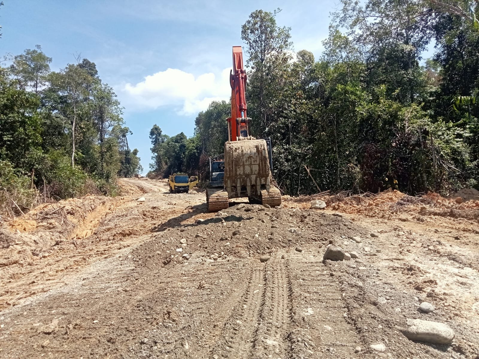 Keringat dan lumpur menjadi bagian dari perjalanan pembangunan jalan ini.