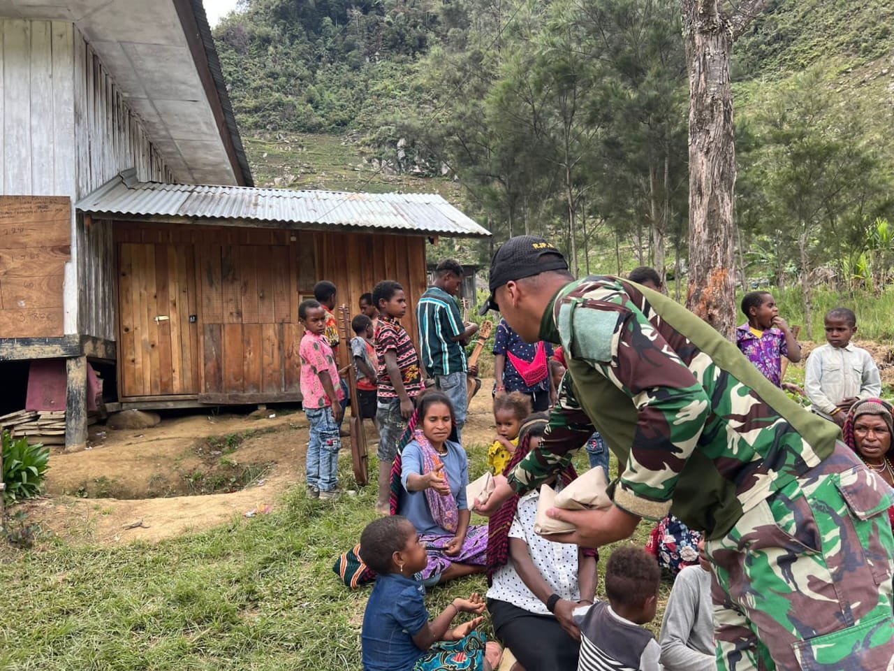 LANNY JAYA – Dalam rangka mempererat rasa persaudaraan kepada masyarakat Papua, Satgas Yonif 614/RJP Pos Balingga melaksanakan kegiatan berbagi Nasi Bungkus kepada masyarakat yang berada di Kampung Balingga, Distrik Balingga, Kabupaten Lanny Jaya, Papua Pegunungan. Minggu (17/8/2025).