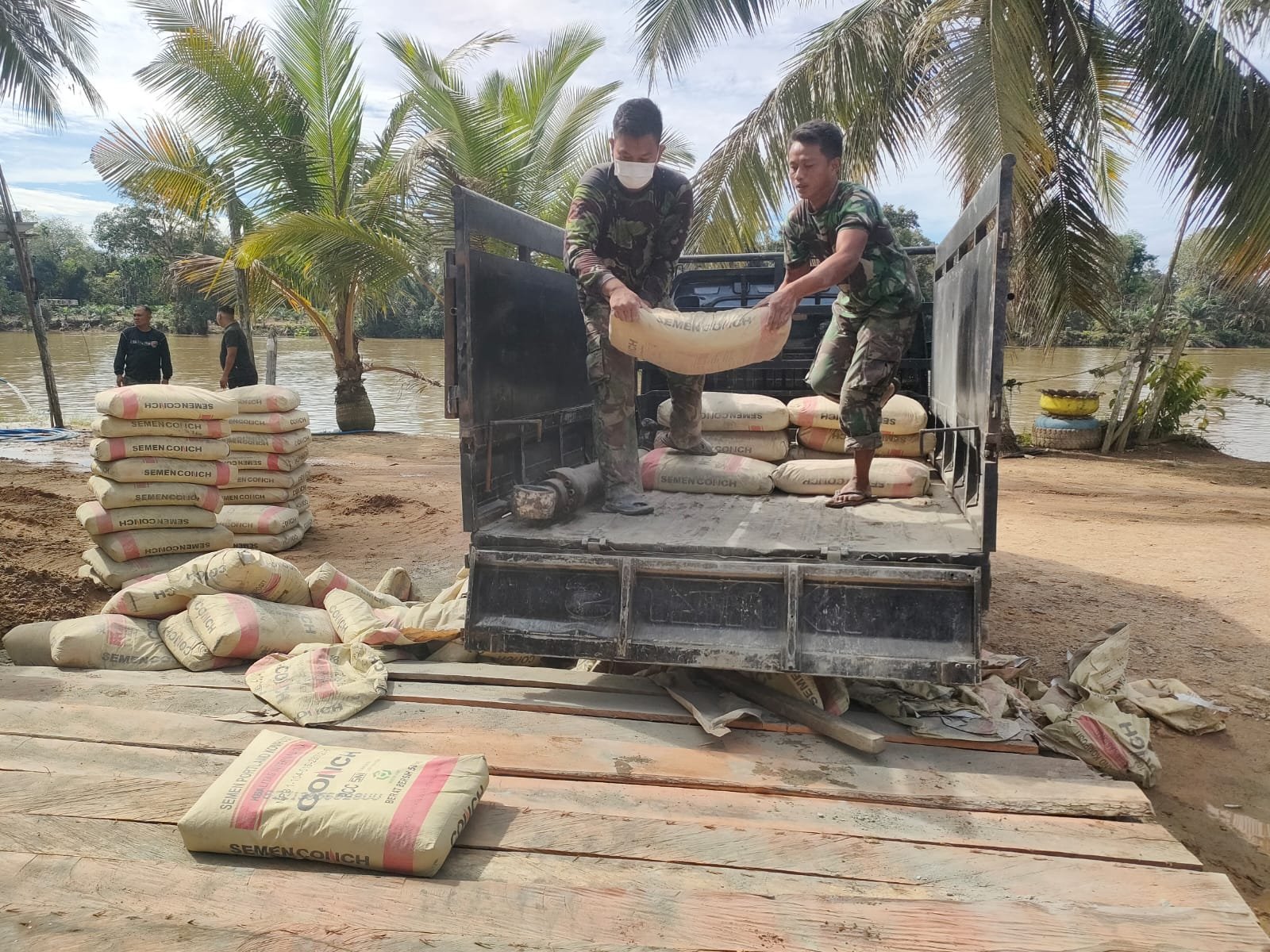 Material seperti kayu, seng, semen, pasir, dan batu bata mulai didistribusikan ke titik sasaran. Kedatangan material ini menjadi penanda bahwa pekerjaan fisik terus dikebut oleh Satgas TMMD bersama warga sekitar yang bahu membahu bergotong royong.
