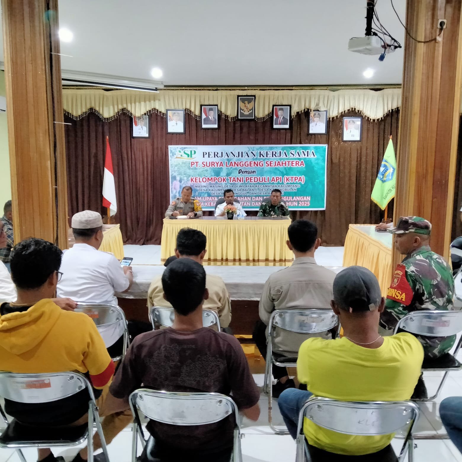 Penandatanganan perjanjian kerja sama antara PT. SLS dengan KTPA (Kelompok Tani Peduli Api) kepada 5 Desa di wilayah Kecamatan Kalumpang Kabupaten HSS yang dilaksanakan di Aula Kecamatan Kalumpang menjadi bukti komitmen Kodim 1003/HSS dalam mencegah dan mengatasi Karhutla.