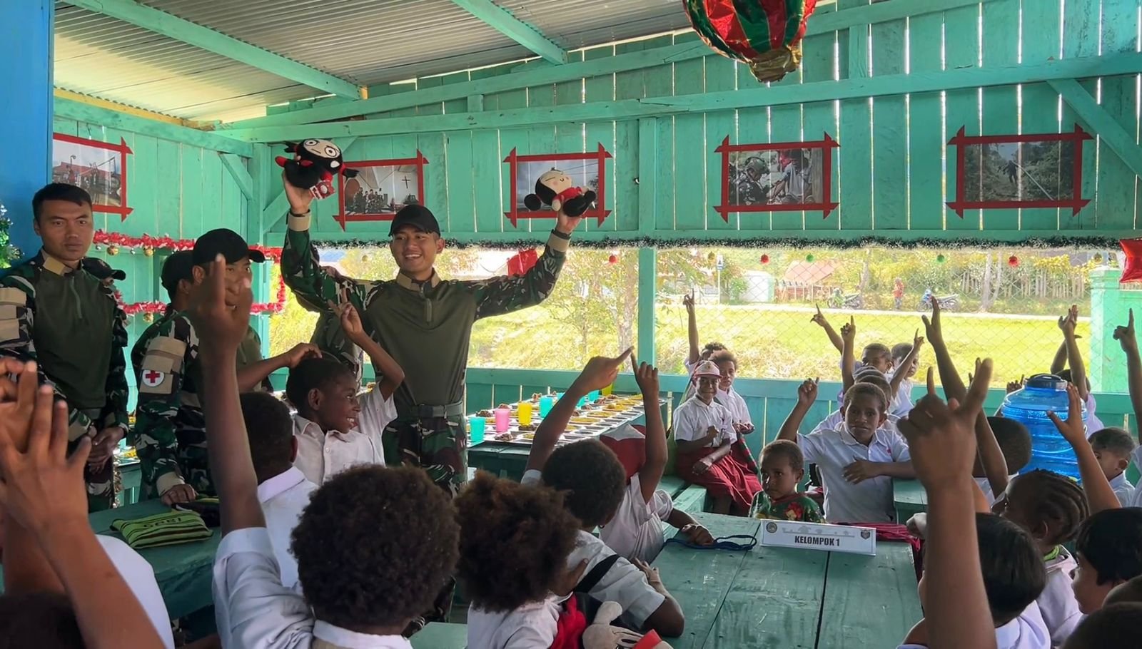 Oksibil, Pegunungan Bintang – Dalam upaya menumbuhkan semangat kebangsaan dan cinta tanah air di kalangan generasi muda, Pos Komando Taktis (Kotis) Satgas Pamtas RI–PNG Yonif 751/Vira Jaya Sakti (VJS) melaksanakan kegiatan sosial pada Senin, 19 Januari 2026, di Rumah Makan Swasembada. Kegiatan ini ditujukan untuk anak-anak yang baru pulang sekolah, bertujuan mendorong semangat belajar dan mempererat hubungan antara prajurit TNI dan masyarakat setempat.