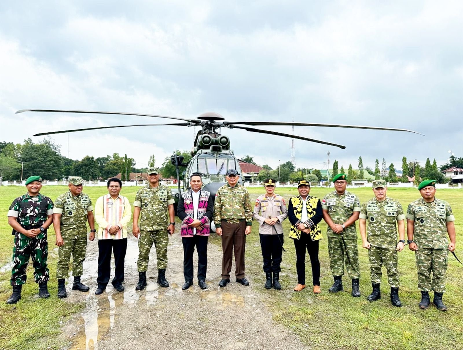 Pengamanan ketat menyertai kedatangan rombongan Menhan, yang tiba menggunakan helikopter militer TNI Angkatan Udara tipe EC-725/H225M dengan nomor registrasi H-2215. Prosedur pengamanan VVIP berjalan lancar, mencerminkan tingkat kesiapsiagaan yang tinggi dari unsur TNI, Polri, dan pemerintahan daerah untuk mendukung agenda nasional.