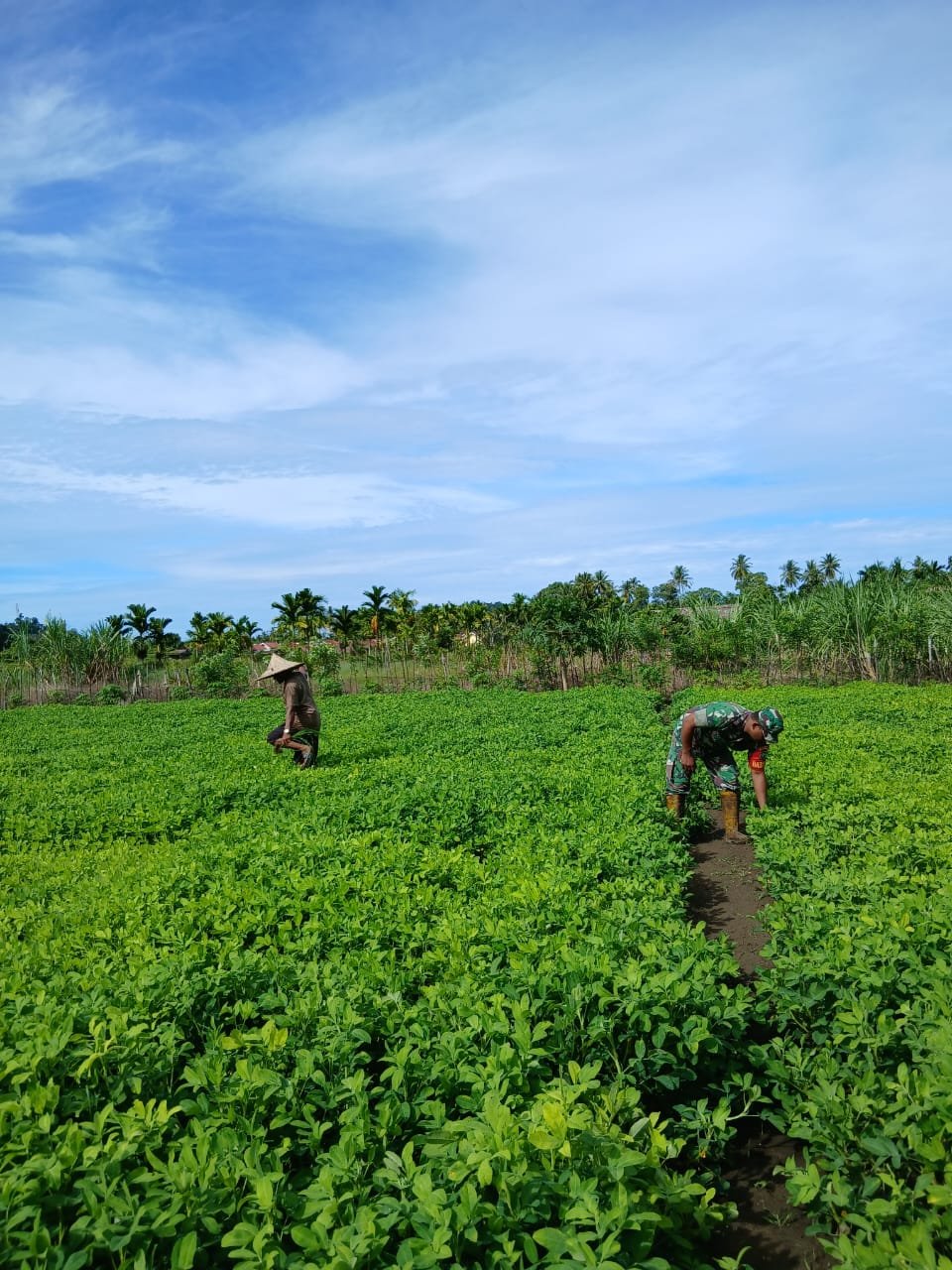 Dengan bantuan Serda Amrillah, proses membersihkan rumput tanaman kacang dapat berjalan lebih lancar dan efisien.