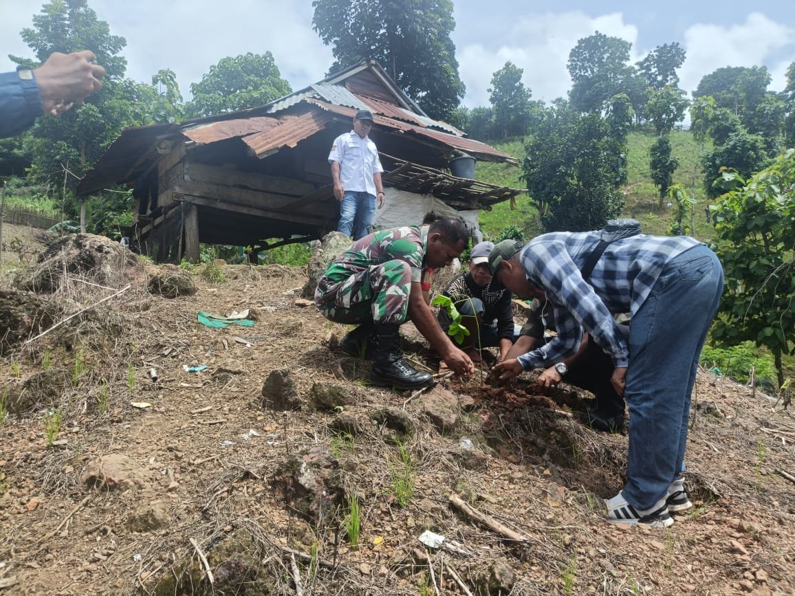 Langgudu, Bima – Anggota Posramil Langgudu Koramil 1608-06/Wawo bersama Balai KPH Maria Donggo Masa dan masyarakat Desa Kalodu menggelar kegiatan penanaman bibit tanaman pokok dan produktif berupa pohon rambutan dan kemiri. Kegiatan ini bertujuan untuk mendorong penghijauan lingkungan sekaligus meningkatkan potensi ekonomi masyarakat melalui hasil panen jangka panjang dari pohon produktif tersebut. Sebanyak 15 warga setempat turut berpartisipasi dalam kegiatan ini.(15/01/2025)