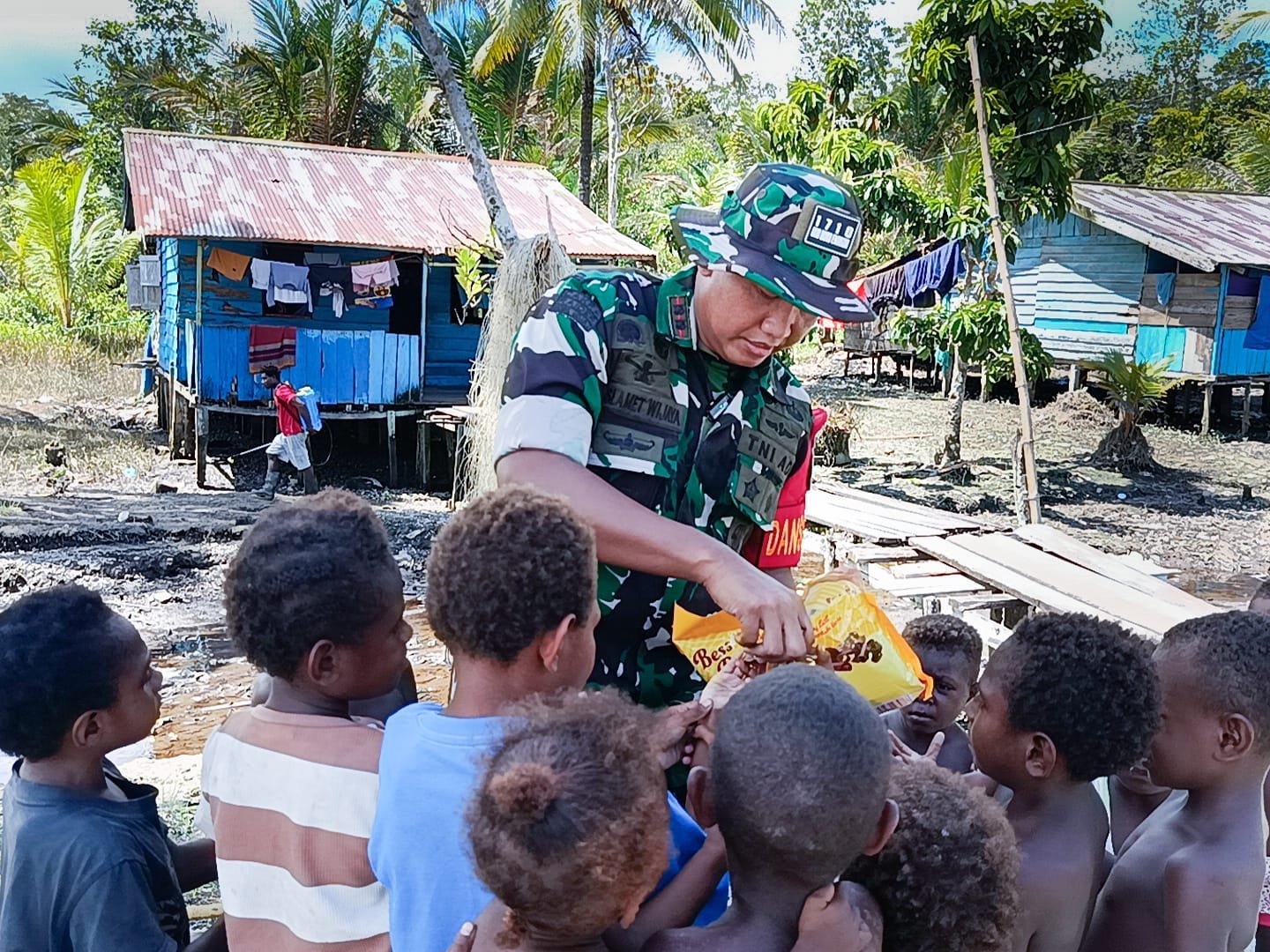 Timika, 16 Mei 2025 – Di tengah padatnya agenda pelaksanaan program TNI Manunggal Membangun Desa (TMMD) ke-124, Komandan Satuan Tugas (Dansatgas) Letkol Inf M. Slamet Wijaya, S.Sos., M.Han., M.A. tetap menunjukkan perhatian terhadap masyarakat, terutama kepada anak-anak di Kampung Pigapu, Distrik Iwaka, Kabupaten Mimika.