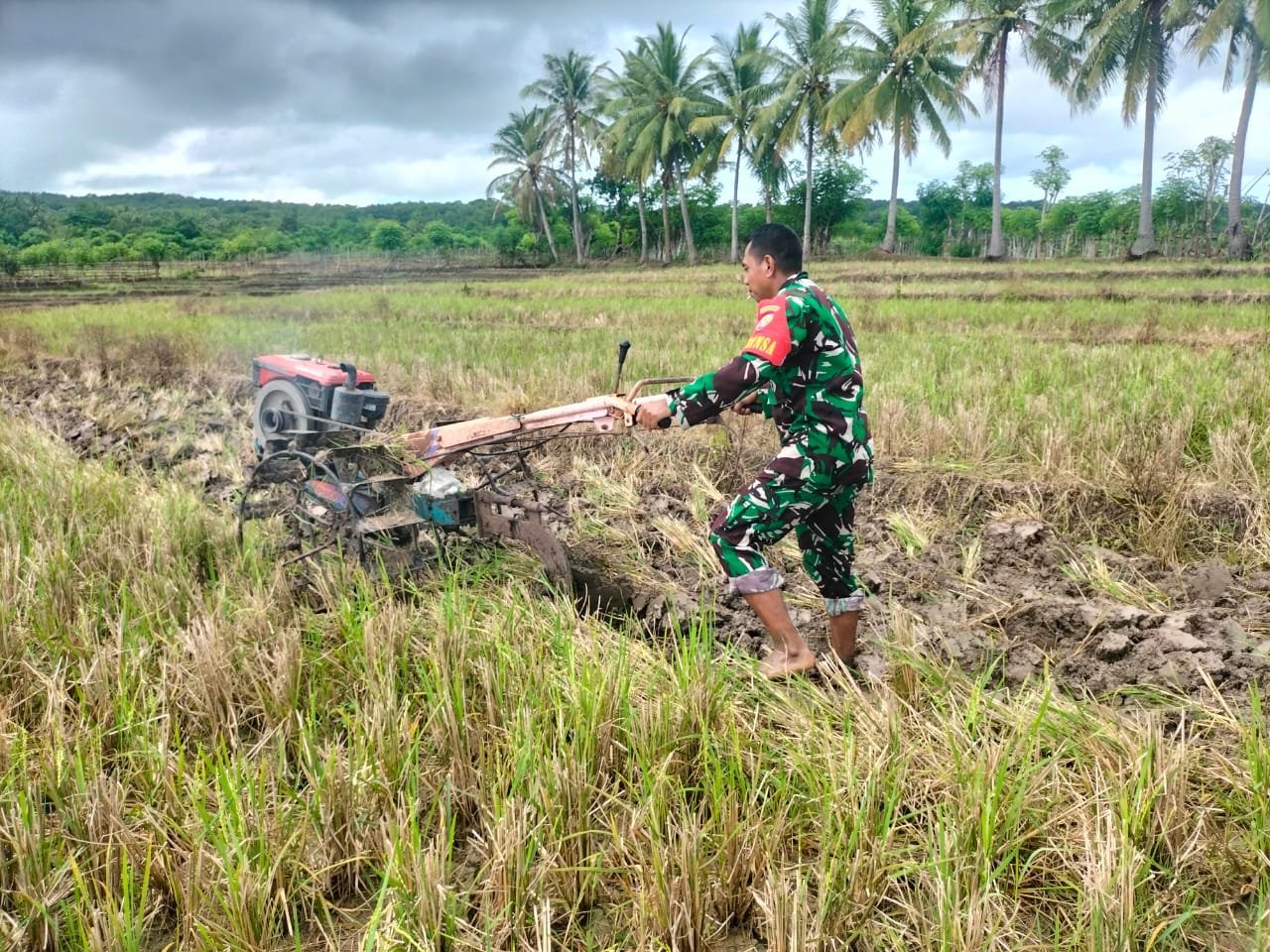 Pemilik lahan Bapak Ayub mengucapkan terima kasih atas bantuan Babinsa yang ikut turun langsung membantu kami dalam proses pengolahan sawah, walaupun panas dan kotor Babinsa sangat bersemangat membantu para petani.”pendim 1627/Rote Ndao.
