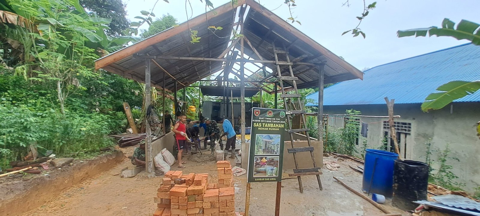 Namun, apa yang membuat kegiatan TMMD Ke-124 di Kelurahan Mansapa ini begitu istimewa dan meninggalkan kesan mendalam adalah partisipasi aktif dan luar biasa dari warga lokal. Mereka tidak hanya menjadi penonton, melainkan pelaku utama yang ikut berpeluh keringat bersama para prajurit. Salah satunya adalah Bapak Ahmadi, seorang warga asli Kelurahan Mansapa yang dikenal ramah dan sangat antusias. Dengan penuh semangat dan tanpa mengenal lelah, Bapak Ahmadi ikut mengambil bagian dalam setiap proses renovasi, dari awal hingga tahap pemasangan atap.