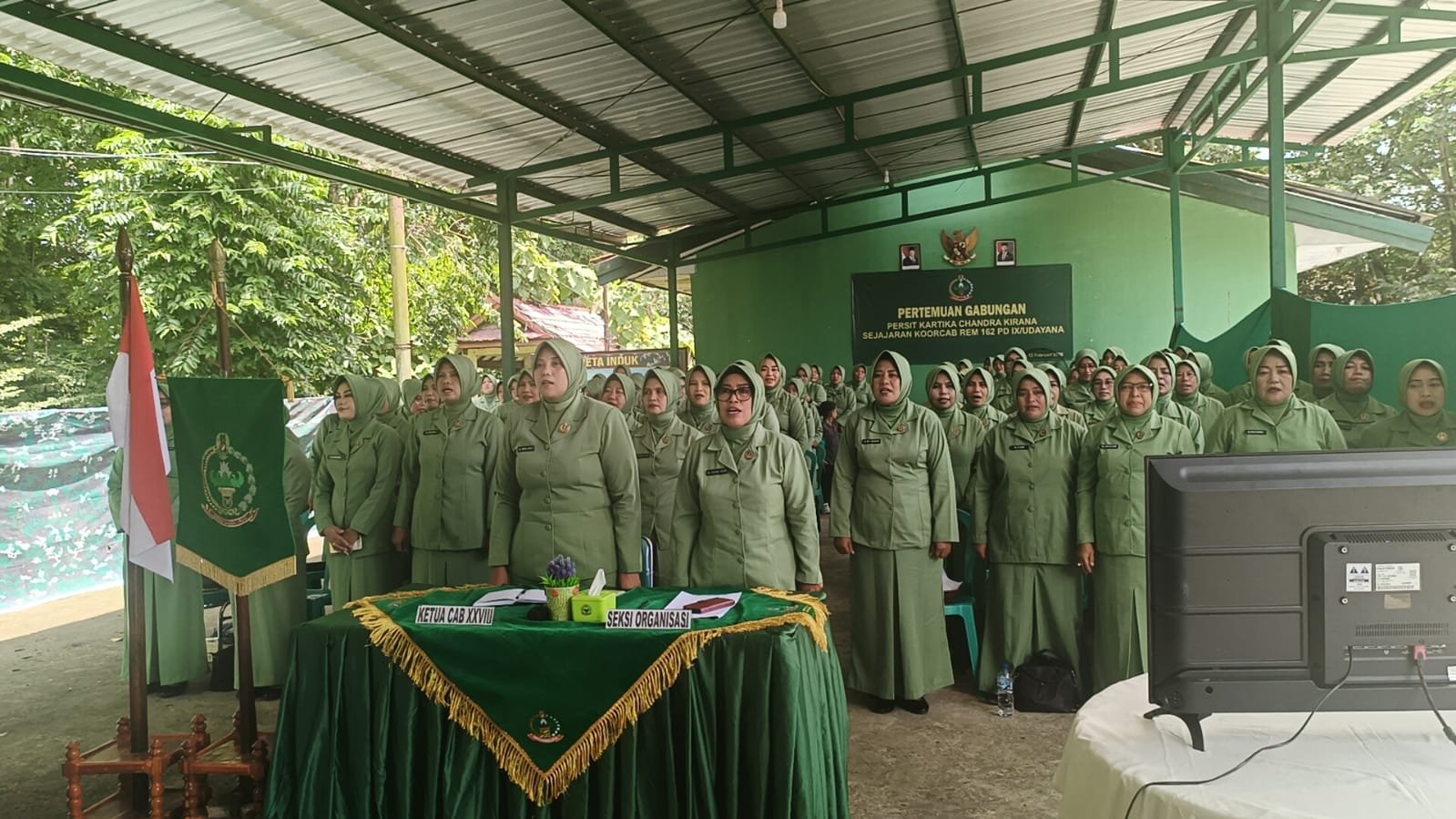Dompu, NTB – Persit Kartika Chandra Kirana (KCK) Cabang XXVIII Dim 1614/Dompu melaksanakan kegiatan Video Conference (Vicon) Zoom yang merupakan Pertemuan Gabungan Persit KCK di bawah Koorcab Rem 162 PD IX/UDY, pada Kamis (12/2). Acara ini berlangsung di Makodim 1614/Dompu, Jln. Ahmad Yani, Kelurahan Dorotangga, Kecamatan Dompu, Kabupaten Dompu, dan dihadiri oleh sekitar 150 peserta.