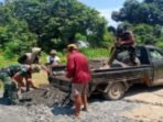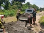 BARITO KUALA – Suara cangkul dan gemeretak batu pecah terdengar bersahutan di Desa Tumih, Kecamatan Wanaraya. Di bawah terik matahari, prajurit TNI