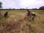 Babinsa Koramil 09/Samatiga Turun ke Sawah: Sertu Buchari Muslim Dampingi Petani Desa Pinem dalam Panen Padi