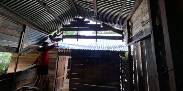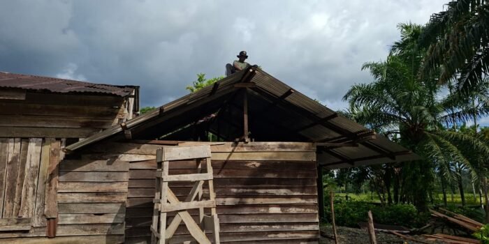 Tulang Bawang – Pengerjaan Rumah Tidak Layak Huni (RTLH) sasaran 1 dalam program TMMD Reguler ke-125 Kodim 0426/Tulang Bawang di Kampung Moris