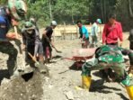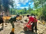Boven Digoel – Di bawah teriknya matahari dan medan yang cukup menantang, semangat gotong royong antara prajurit TNI dan masyarakat terus menyala