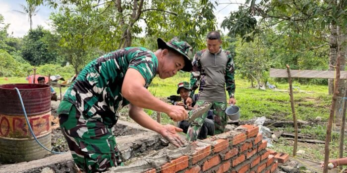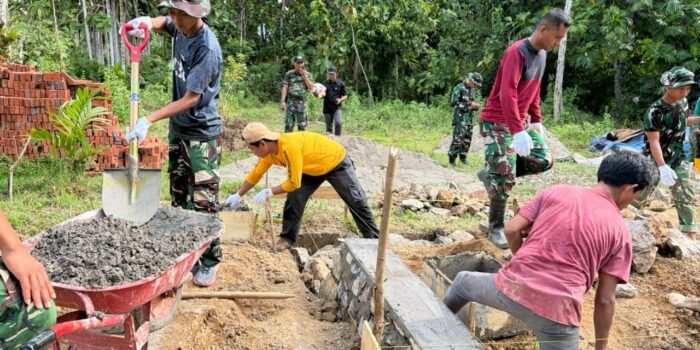 Boven Digoel – Di bawah teriknya matahari dan medan yang cukup menantang, semangat gotong royong antara prajurit TNI dan masyarakat terus menyala