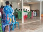 Boven Digoel – Suasana haru penuh kebersamaan terasa di Gereja Katolik Sakramen Maha Kudus Waropko, ketika personel Satgas TMMD ke-126 Kodim 1711/Boven
