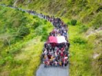Bersama Masyarakat, Satgas Yonif 715/Motuliato dan Apkam Puncak Jaya Kibarkan Bendera Merah Putih Raksasa di momen tanggal 1 Mei 2025