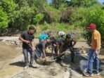 Flotim – Babinsa Koramil 1624 – 02/Adonara Kopda Agus priyanto dan Kopda roji bersama warga bahu-membahu melaksanakan kerja bakti semenisasi Jalan Desa