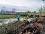 MERAUKE – Babinsa Koramil 1707-04/Kimaam, Sertu Datus Lobya, bersama tiga orang Babinsa Koramil 1707-04/Kimaam jajaran Kodim 1707/Merauke, turun langsung ke sawah membantu