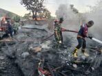 Koramil 1608-04/Woha Bantu Damkar dan Warga Pemadaman Kebakaran di Desa Samili