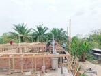 Penawar Aji (Tulang Bawang) — Babinsa Koramil 426-05 PA, Kodim 0426 Tulang Bawang, Praka Hardian bersama warga melakukan kerja bakti melanjutkan pembangunan