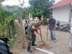 ACEH BARAT — Wujud nyata kepedulian terhadap masyarakat desa binaan, Babinsa Koramil 08/Arongan Lambalek Kodim 0105/Aceh Barat, Serma Sucahyono, turun langsung membantu
