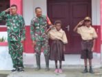 Personel Satgas TMMD Berikan Pelatihan PBB kepada Siswa-siswi SD Pigapu
