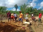 Bombana – Semangat gotong royong antara personel Satgas TNI Manunggal Membangun Desa (TMMD) ke-124 dan masyarakat Desa Lamuru, Kecamatan Matausu, Kabupaten Bombana,