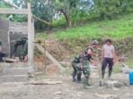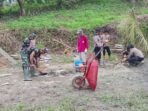 Bombana — Kekompakan anggota Satgas TNI Manunggal Membangun Desa (TMMD) ke-124 Kodim 1431/Bombana bersama masyarakat terus terlihat dalam pembangunan fasilitas MCK di