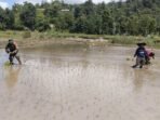 Babinsa Sertu Alifin Dampingi Petani Desa Kabukarudi Tanam Padi Demi Dukung Ketahanan Pangan