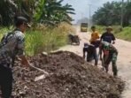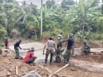 Babinsa Melaksanakan Gotong Royong Bersama Masyarakat di Desa Binaan